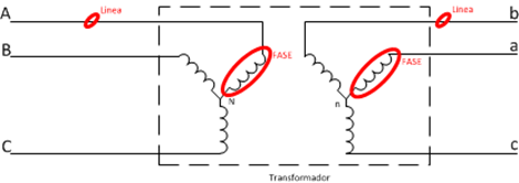 entonces vamos a llamar fase a la tensión o corriente que vemos en un devanado del transformador, motor o generador.